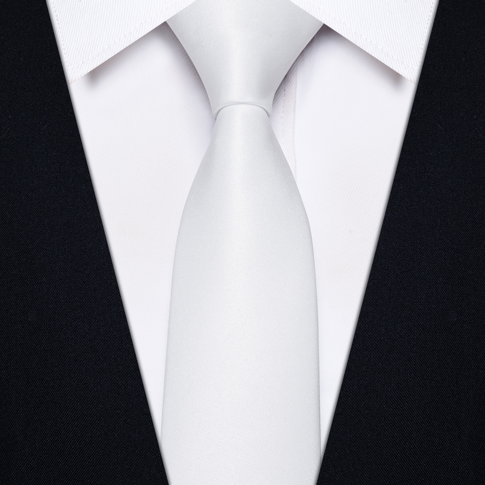 Erheben Sie Ihre formelle Erscheinung mit der Glacial Elegance Tie, einem Symbol der Gelassenheit und des Selbstvertrauens. Diese Krawatte in reinem Weiß ergänzt eine Vielzahl von Anzügen und Smokings und verleiht Ihrem Ensemble für jede gehobene Veranstaltung eine moderne und dennoch klassische Note.