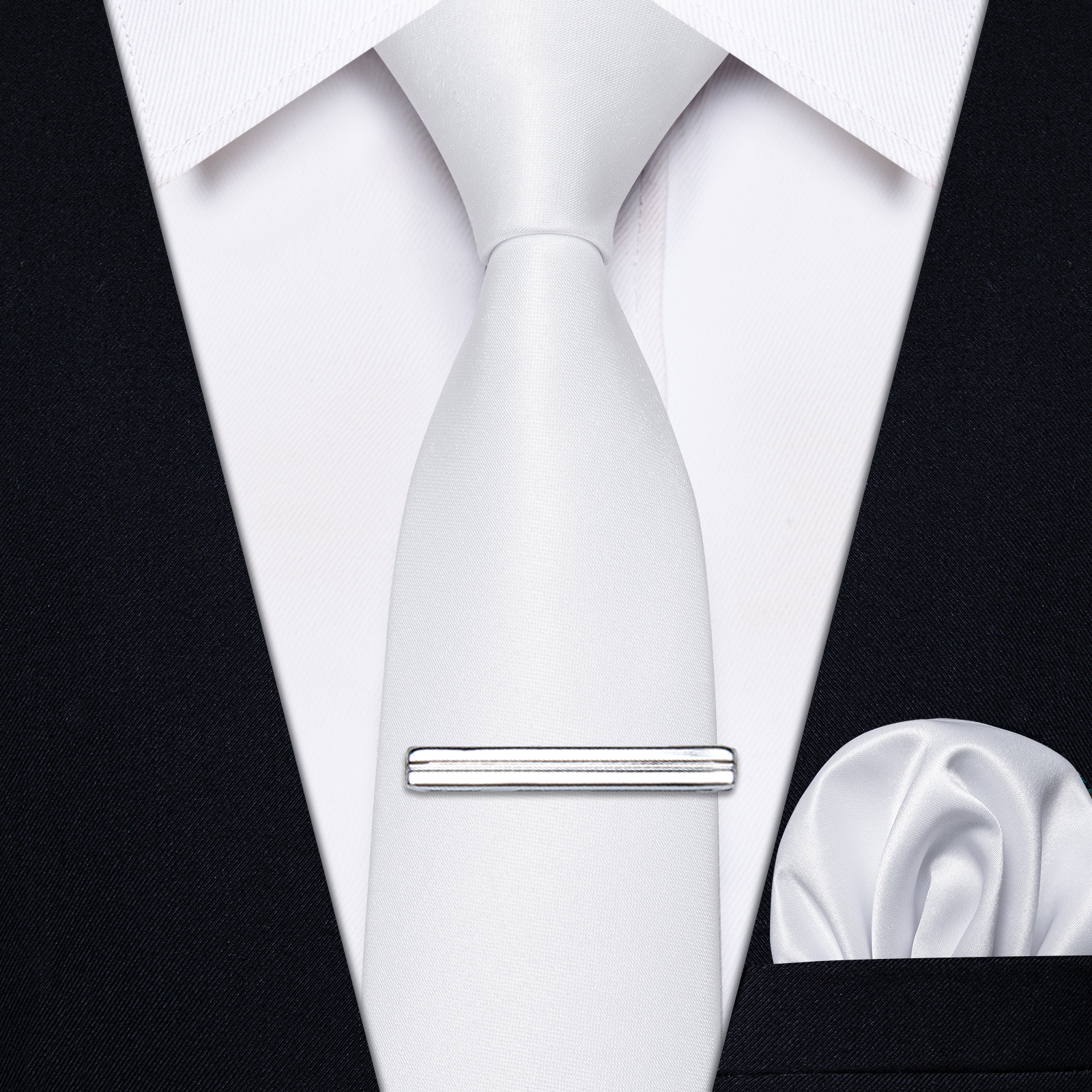 Die Glacial Elegance Krawatte strahlt Selbstbewusstsein mit ihrem modernen, schlanken weißen Design aus.