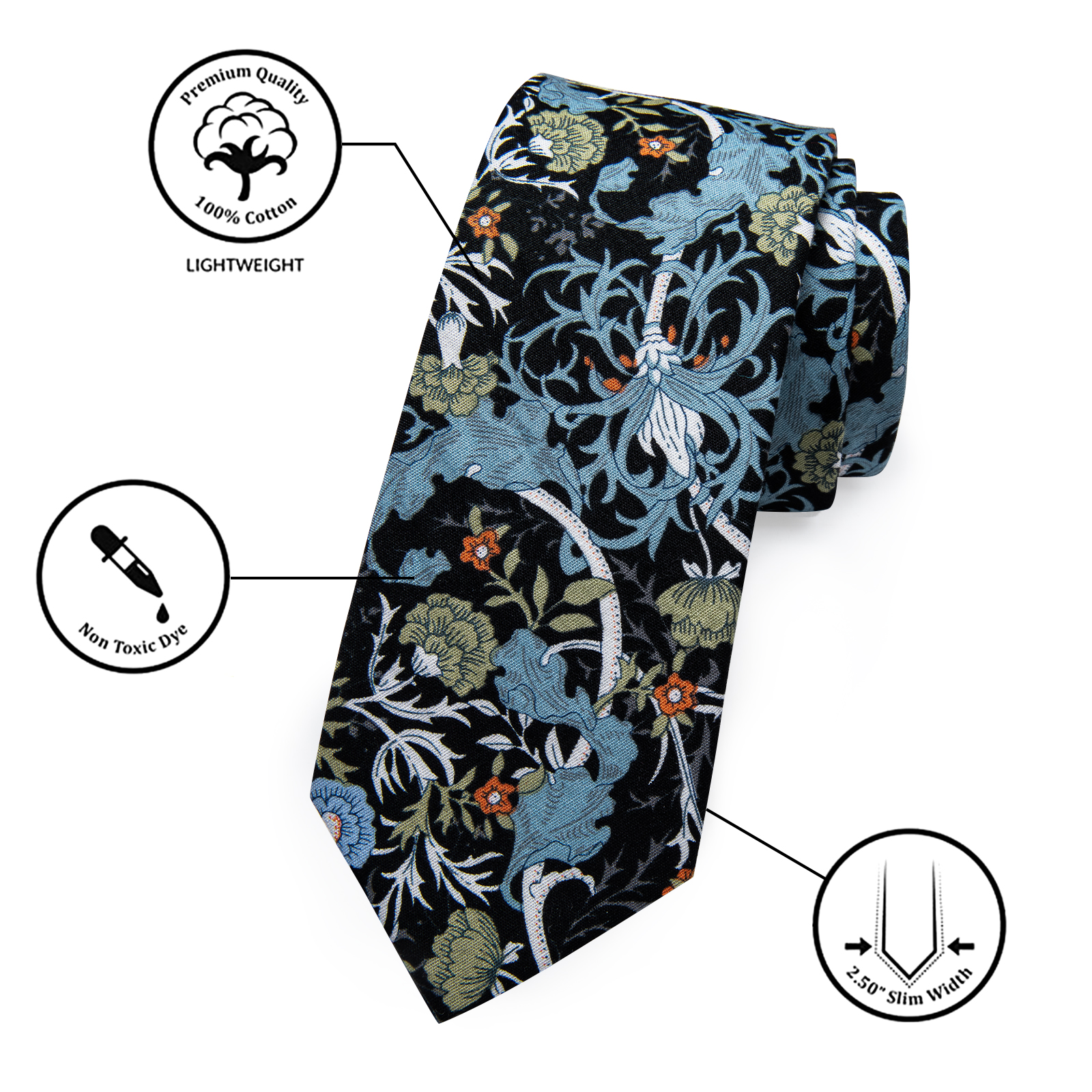 Etiquetas: Algodón, Azul, Blanco, Corbatas estrechas, Corbatas Slim, Floral, Gris, Naranja, Negro, Verde