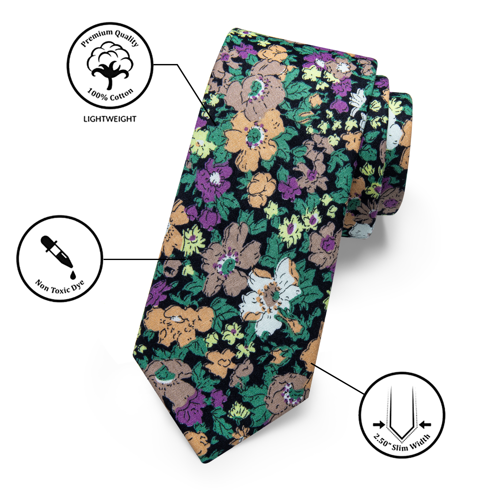 Etiquetas: Algodón, Blanco, Corbatas estrechas, Corbatas Slim, Floral, Marrón, Naranja, Púrpura, Verde