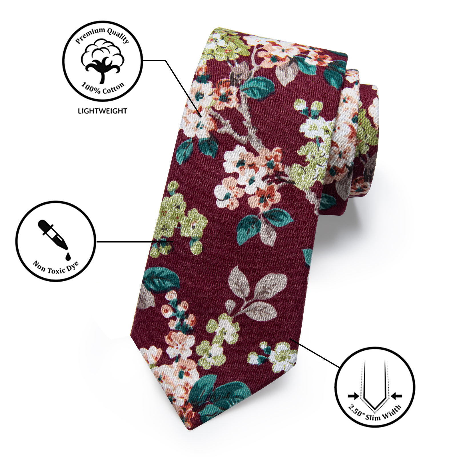 Etiquetas: Algodón, Blanco, Burdeos, Corbatas estrechas, Corbatas Slim, Floral, Marrón, Rojo, Verde