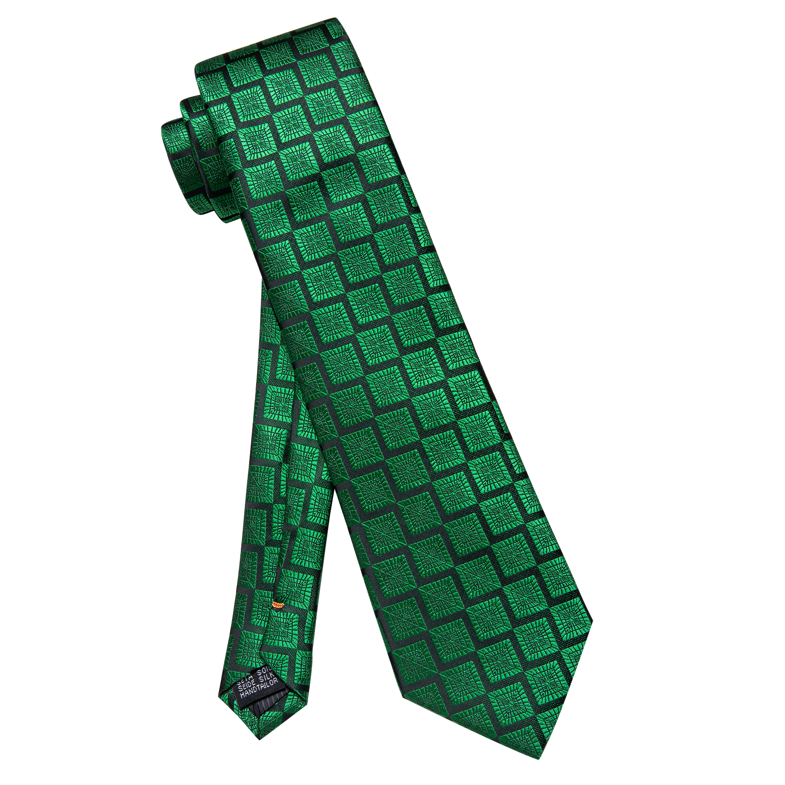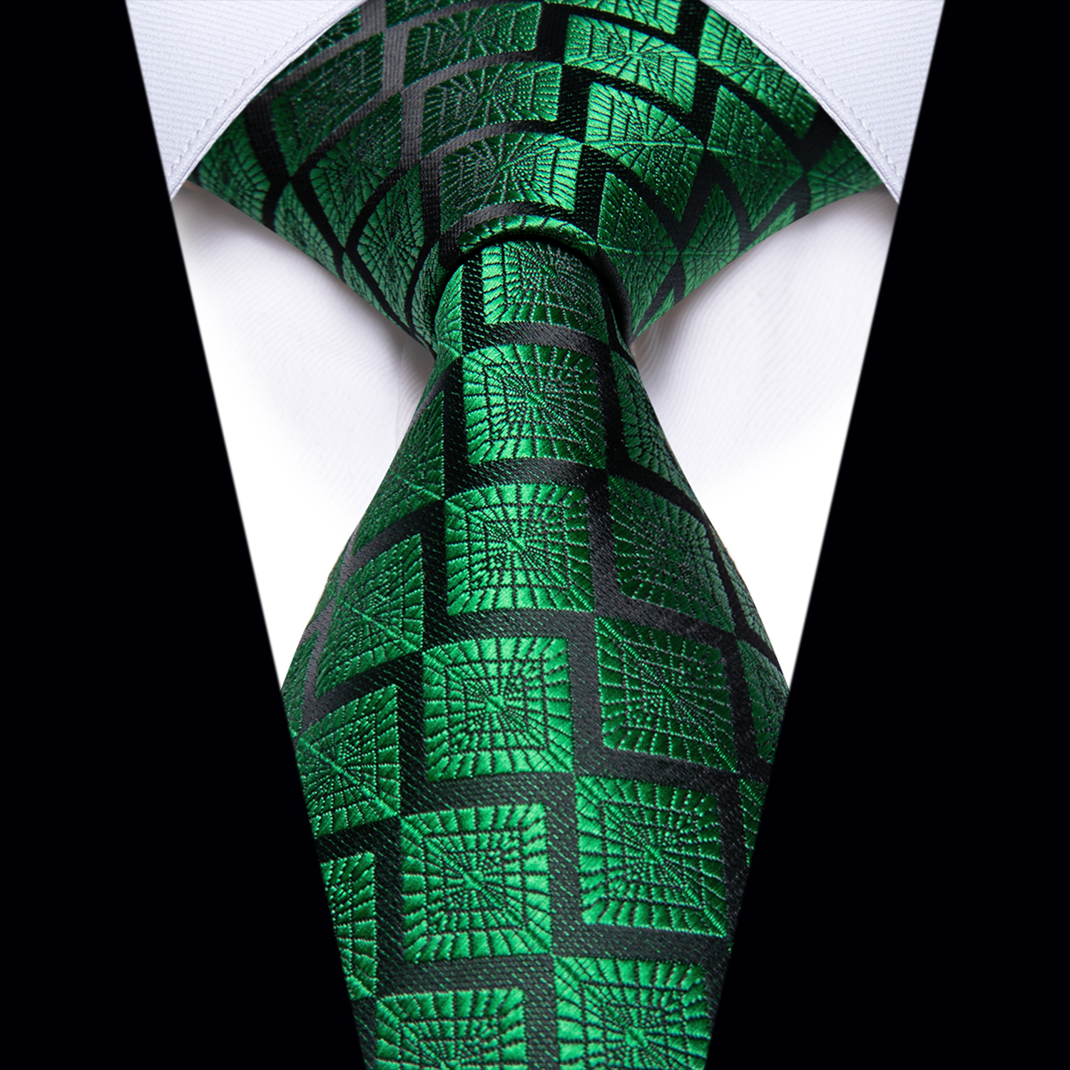Etiquetas: Caja regalo, Corbata, Corbata simple, Geométrico, Negro, Seda, Verde
