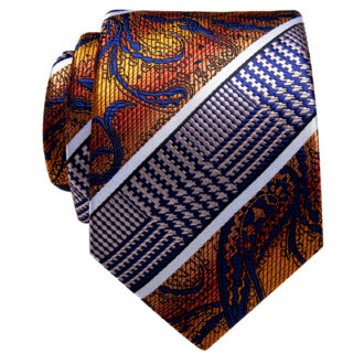 The paisley tie pattern is a timeless design featuring an intricate teardrop-shaped motif with ornate details. Originating from Persian and Indian designs, this pattern is characterized by swirling, leaf-like shapes that often include floral elements. Paisley ties are typically vibrant, with rich color combinations, making them a standout accessory that adds a touch of sophistication and elegance to any outfit.