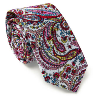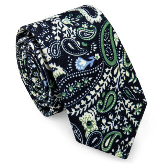 The paisley skinny tie pattern is a timeless design featuring an intricate teardrop-shaped motif with ornate details. Originating from Persian and Indian designs, this pattern is characterized by swirling, leaf-like shapes that often include floral elements. Paisley skinny ties are typically vibrant, with rich color combinations, making them a standout accessory that adds a touch of sophistication and elegance to any outfit.