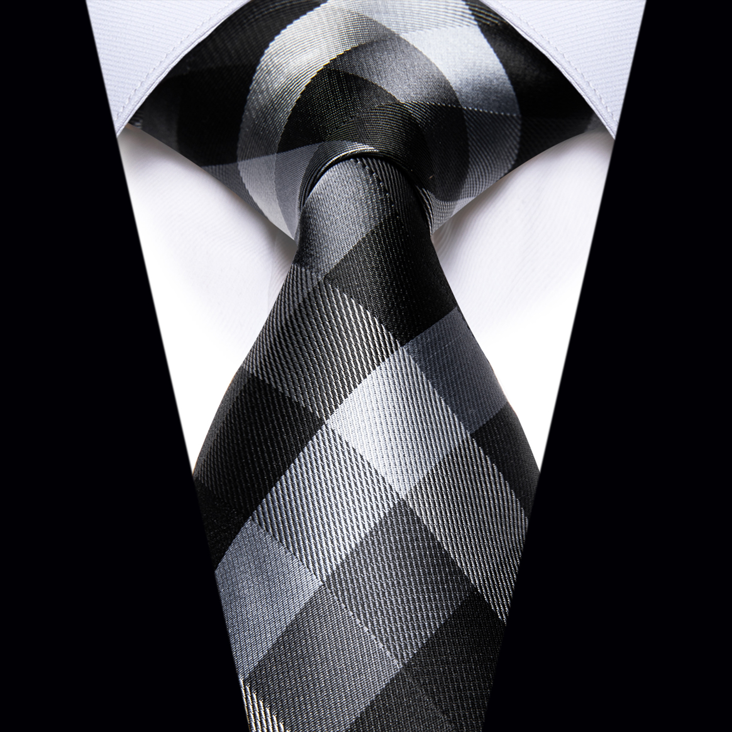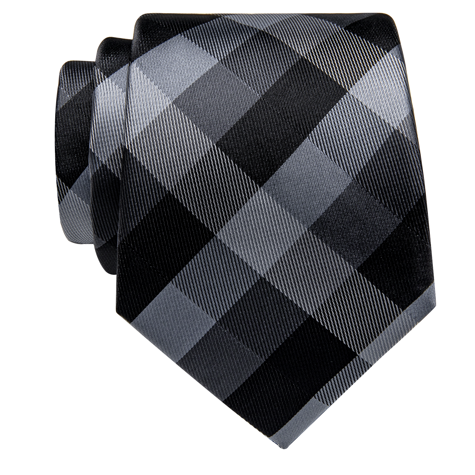 Tags: Black, Gift Box, Gray, Grey, Necktie, Plaid, Silk, Silver, Single Tie