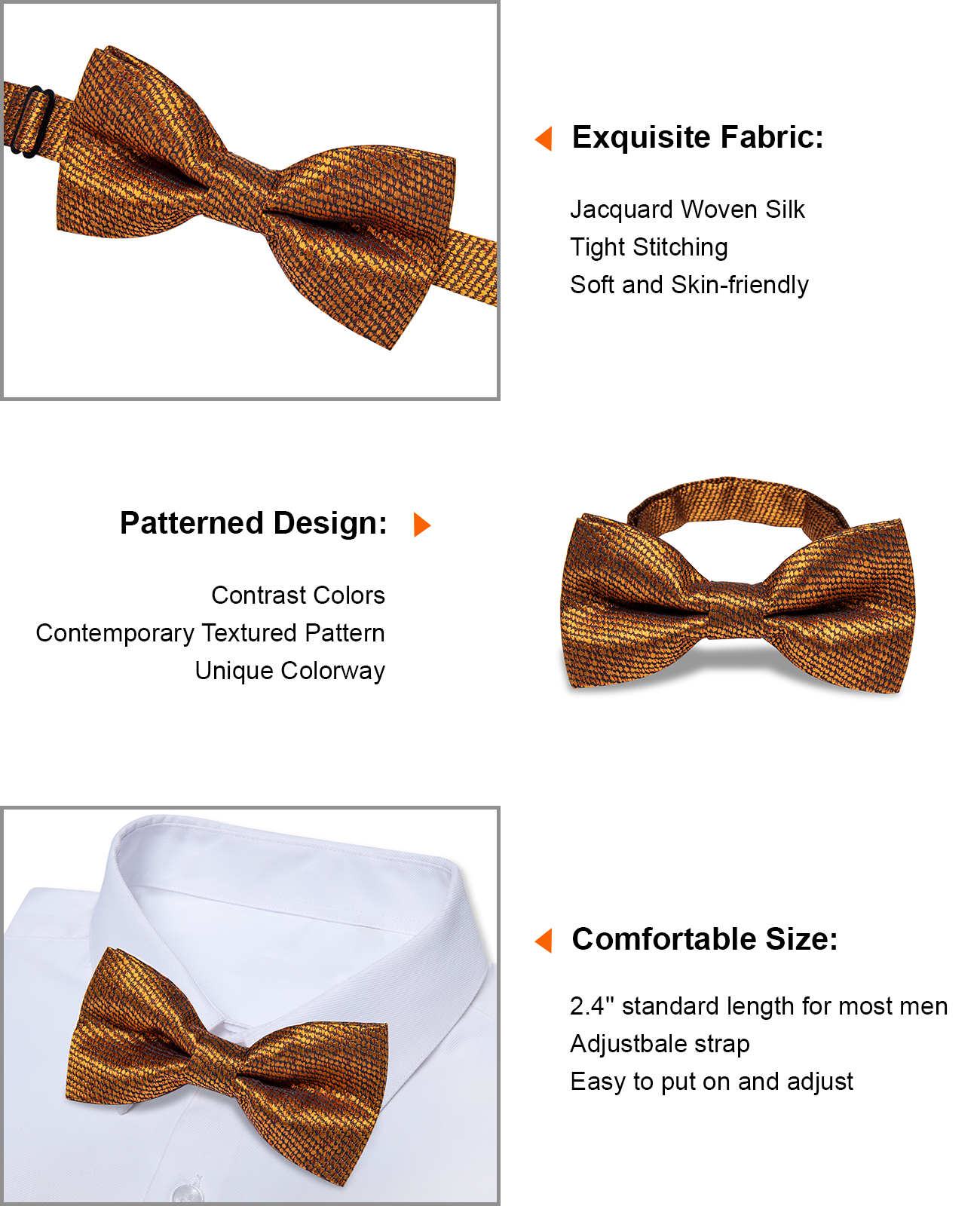 Tags: Bow Tie, Burnt Orange, Chestnut Brown, Contemporary, Houndstooth, Pre-Tied, Saffron Yellow, Silk, Single Bow-Tie