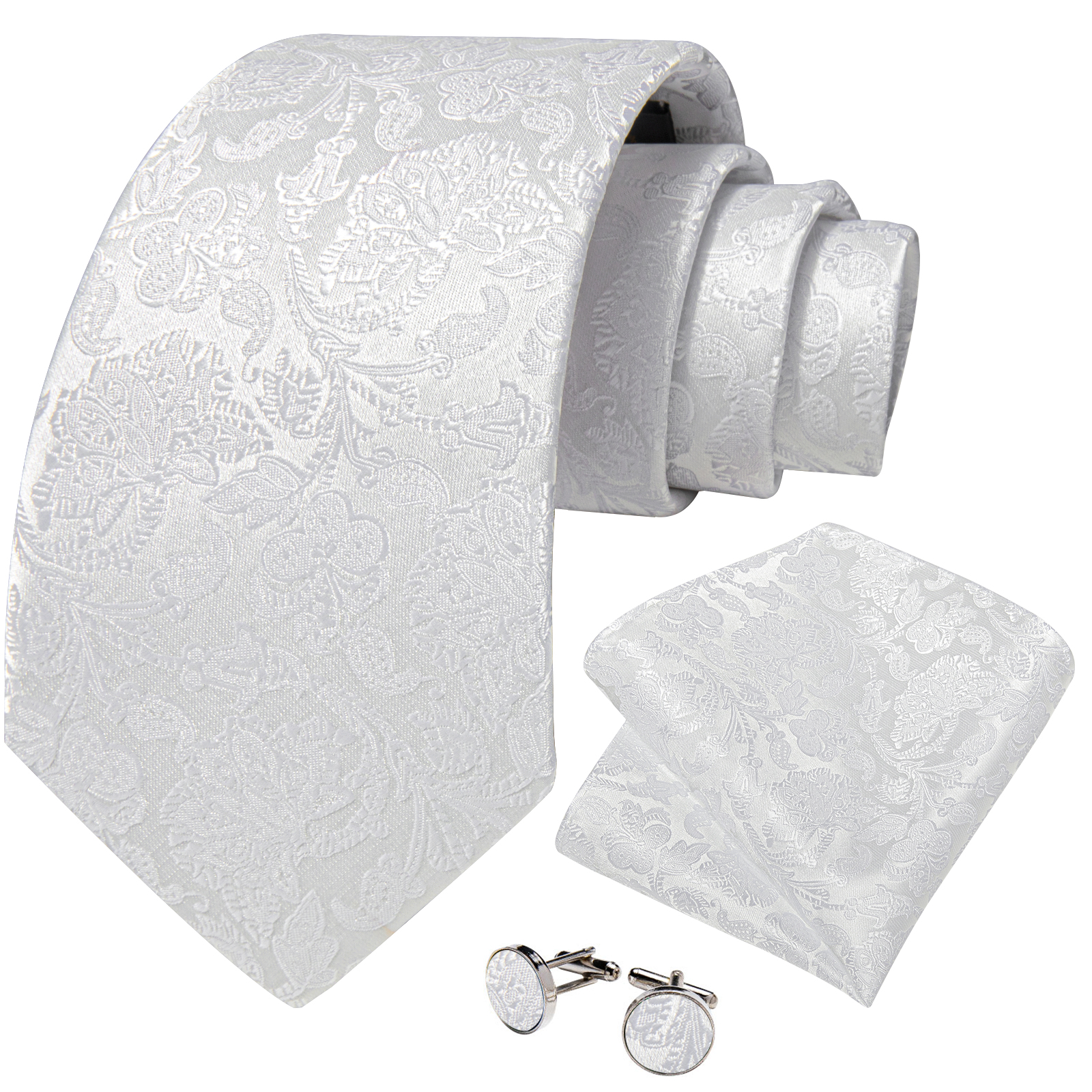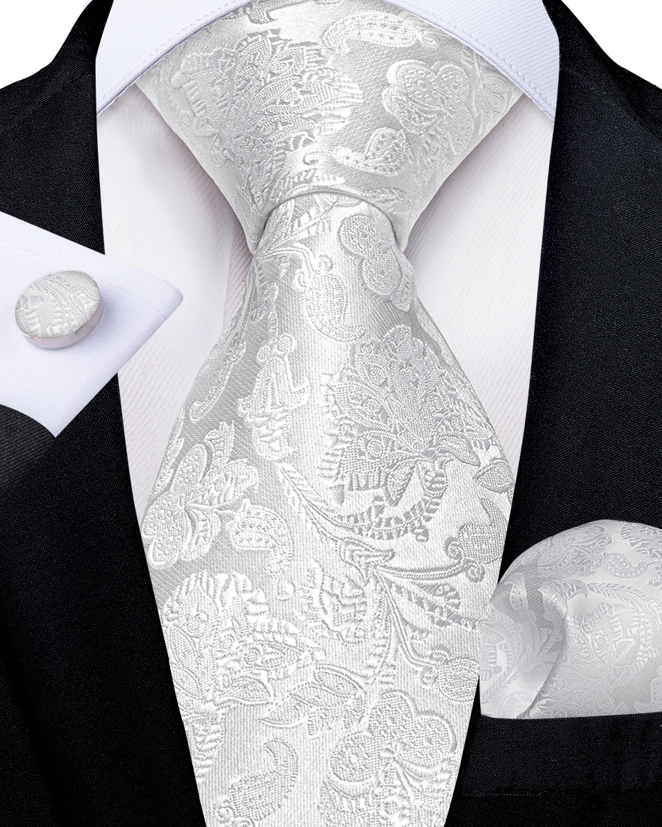 The Frosted Bloom Floral Tie Set brings delicate floral texture to an all-white palette—refined and wedding-ready.