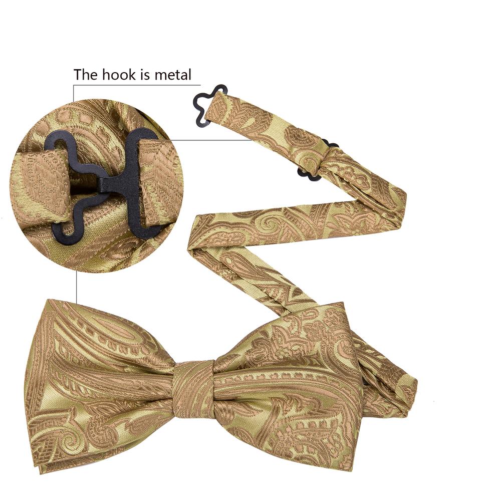 The refined Golden Paisley Bow Tie features an intricate woven design, ideal for formal and special occasions.