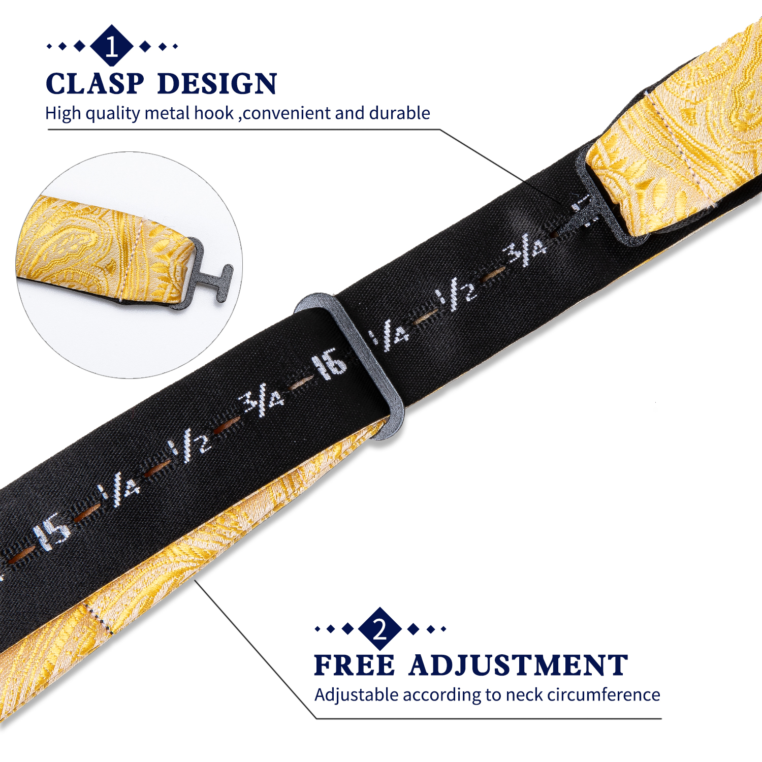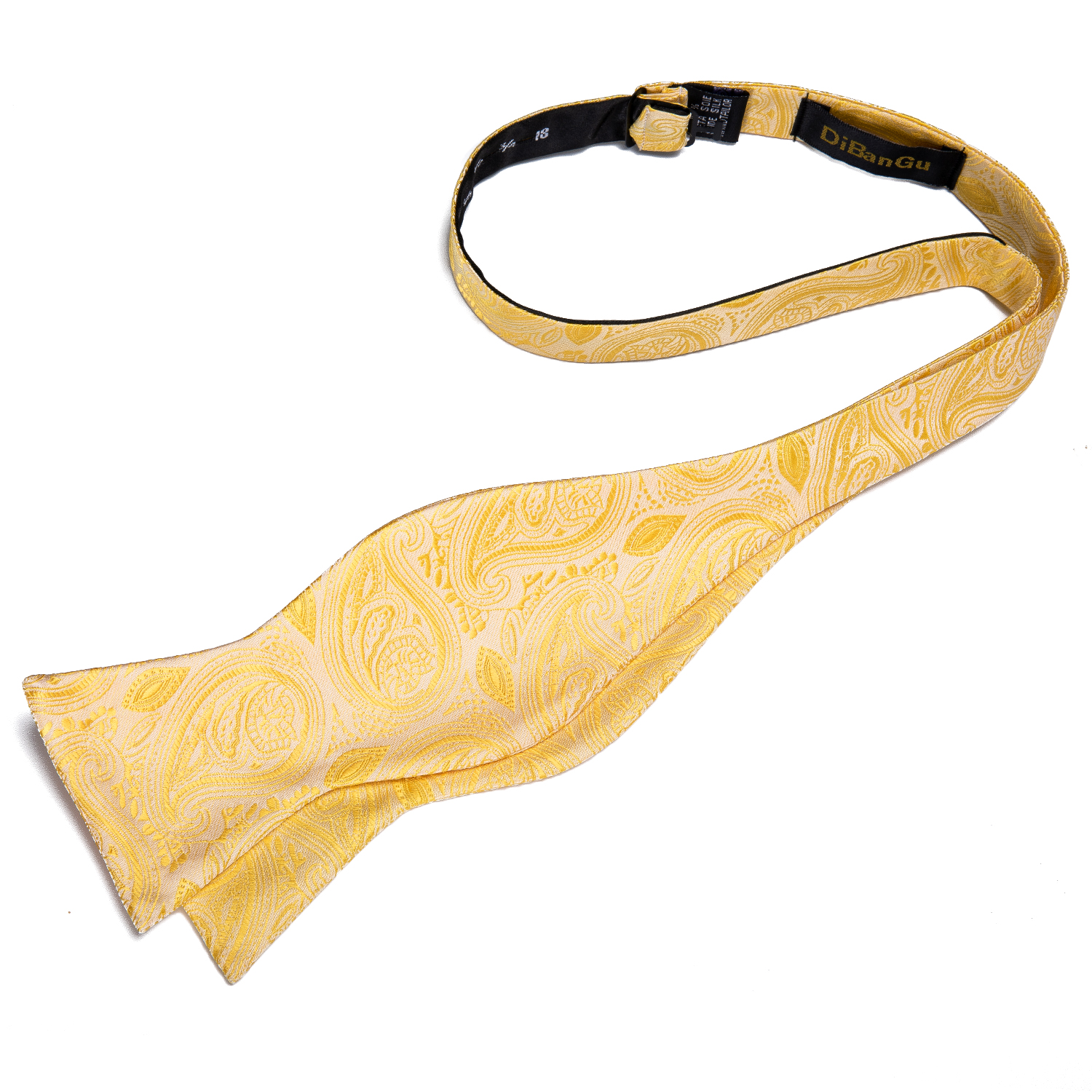 Illuminate your formalwear with the Golden Sunrise Paisley Bow Tie. This radiant bow tie features an exquisite paisley pattern in vibrant shades of golden yellow, crafted from luxurious silk. Perfect for weddings, galas, and special occasions, the Golden Sunrise Paisley Bow Tie adds a touch of warmth and elegance to any ensemble. Its adjustable strap ensures a comfortable and secure fit, allowing you to shine with confidence and style.
