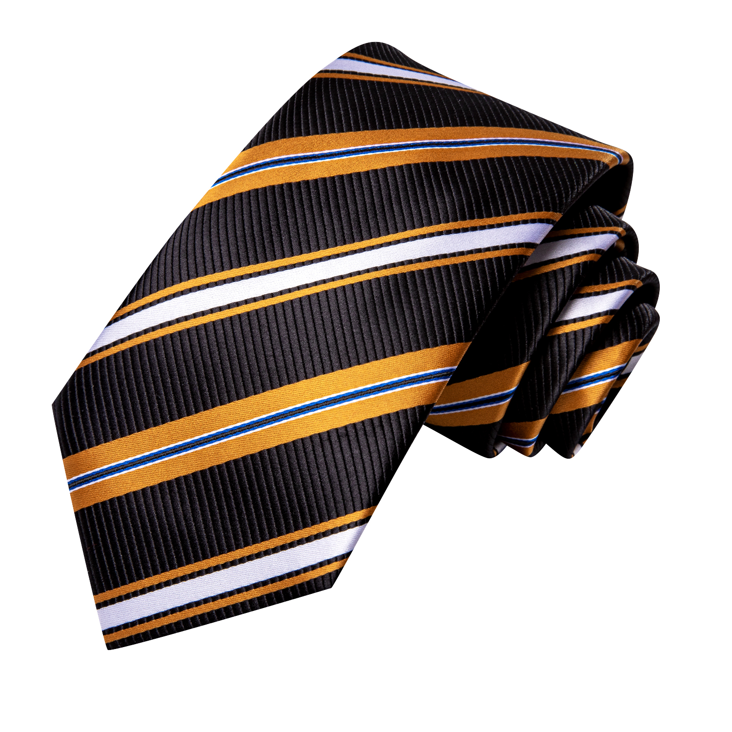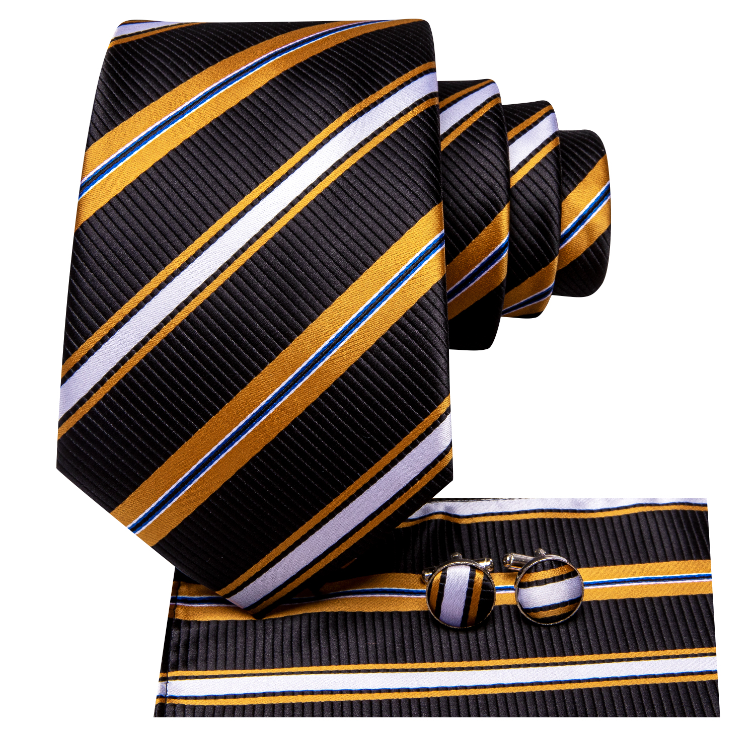 Tags: Black, Gift Box, Golden Yellow, Light Blue, Necktie, Silk, Stripes, White