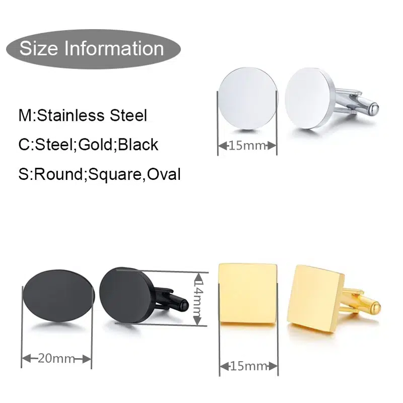 Introducing the “High Quality Stainless Steel Personalized Cufflinks” by BonitoBros, where timeless style meets modern personalization. These premium cufflinks are crafted from durable stainless steel, ensuring they maintain their shine and elegance for years to come. Available in three distinctive shapes—round, square, and oval—and in three sophisticated colors: silver, gold, and black. Our High Quality Stainless Steel Personalized Cufflinks are designed to complement any formal or business attire.
