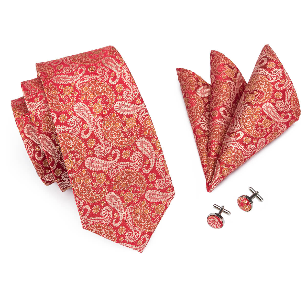 In the warm orange-red and resplendent gold of this tie, tales of indian lavish palace courts unfold, bringing with them the splendor and opulence of a storied reign.