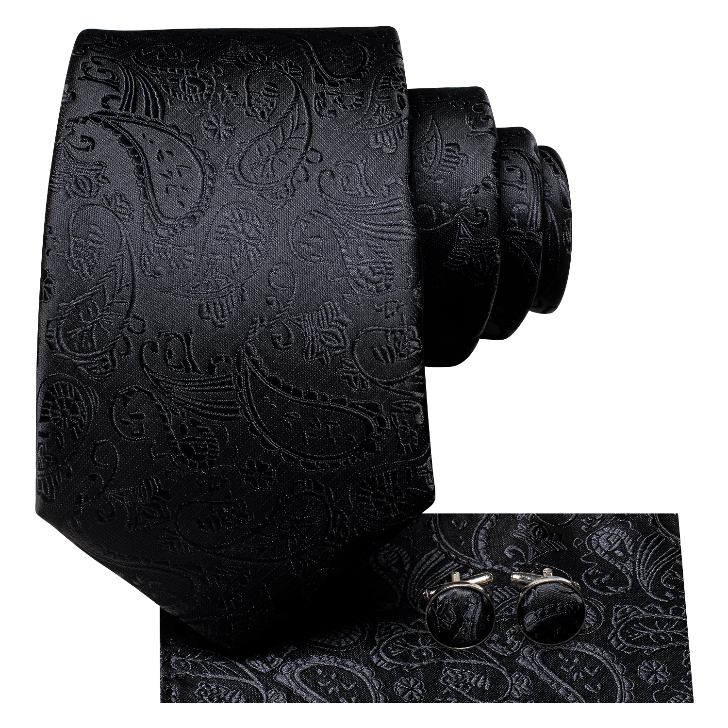 Immerse yourself in the depths of the night with the Midnight Majesty Paisley Tie. Its subtle paisley texture under a classic black shade makes it a quintessential piece for black-tie affairs and corporate meetings.