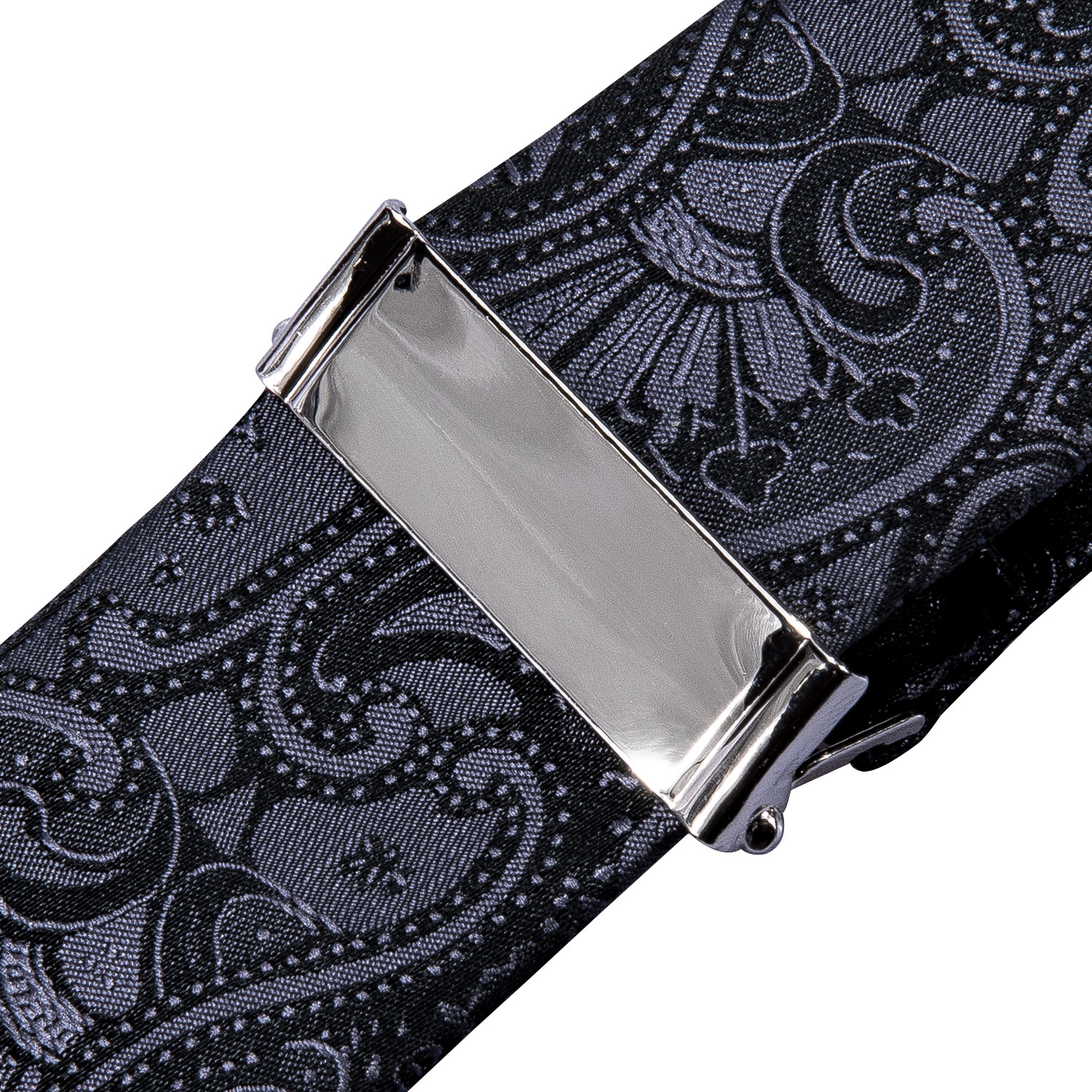 The Noir Prestige Paisley Suspenders feature an intricate black paisley design, perfect for weddings and upscale occasions.