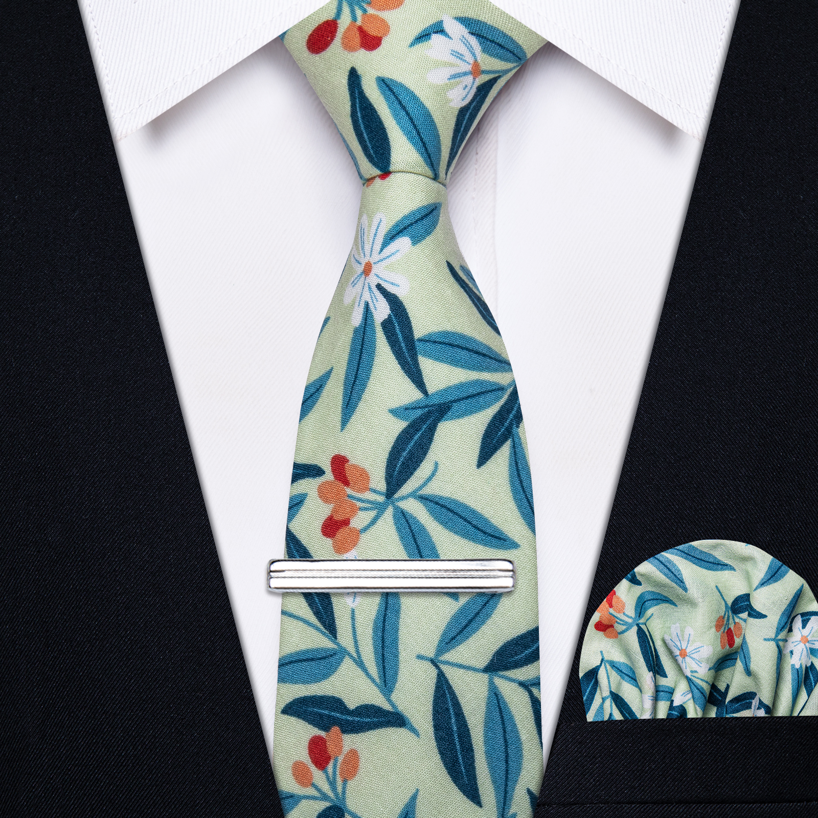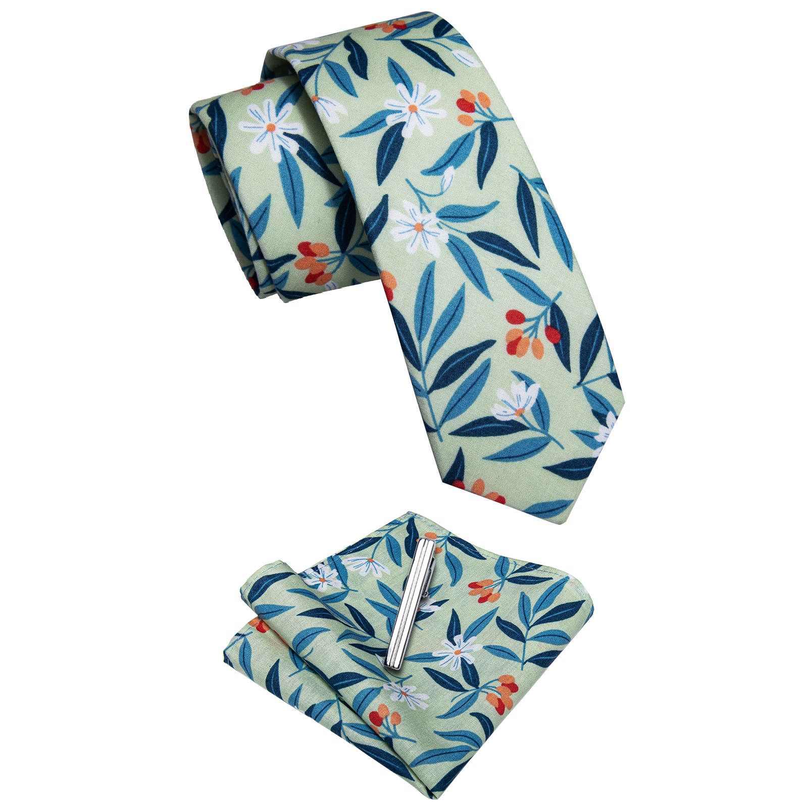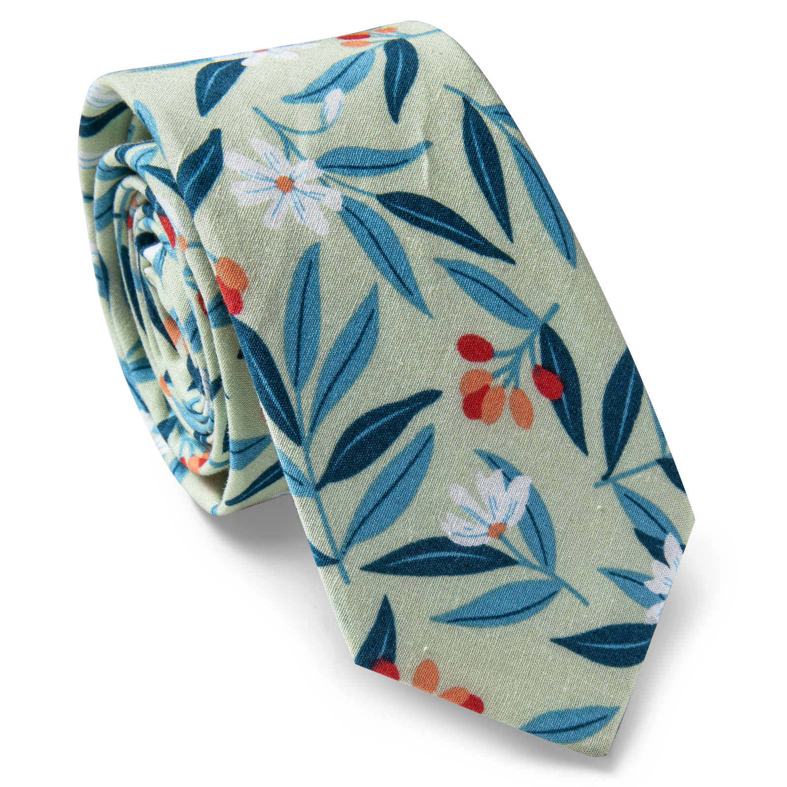 Immerse yourself in the charm of Mediterranean olive groves with this stunning Olive Grove Elegance Floral Skinny Tie. Featuring delicate leaves and floral accents on a soft green background, this tie is perfect for a sophisticated yet fresh look.