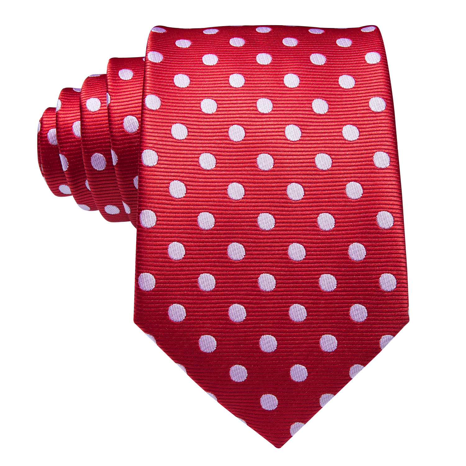 A true statement piece, the “Ruby Rendezvous” tie features a rich, ruby red backdrop with perfectly placed ivory polka dots, evoking timeless elegance for any upscale gathering or intimate affair.