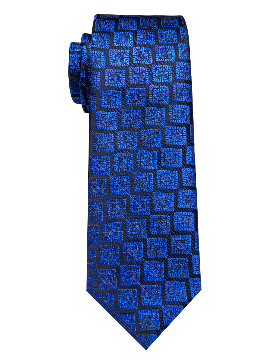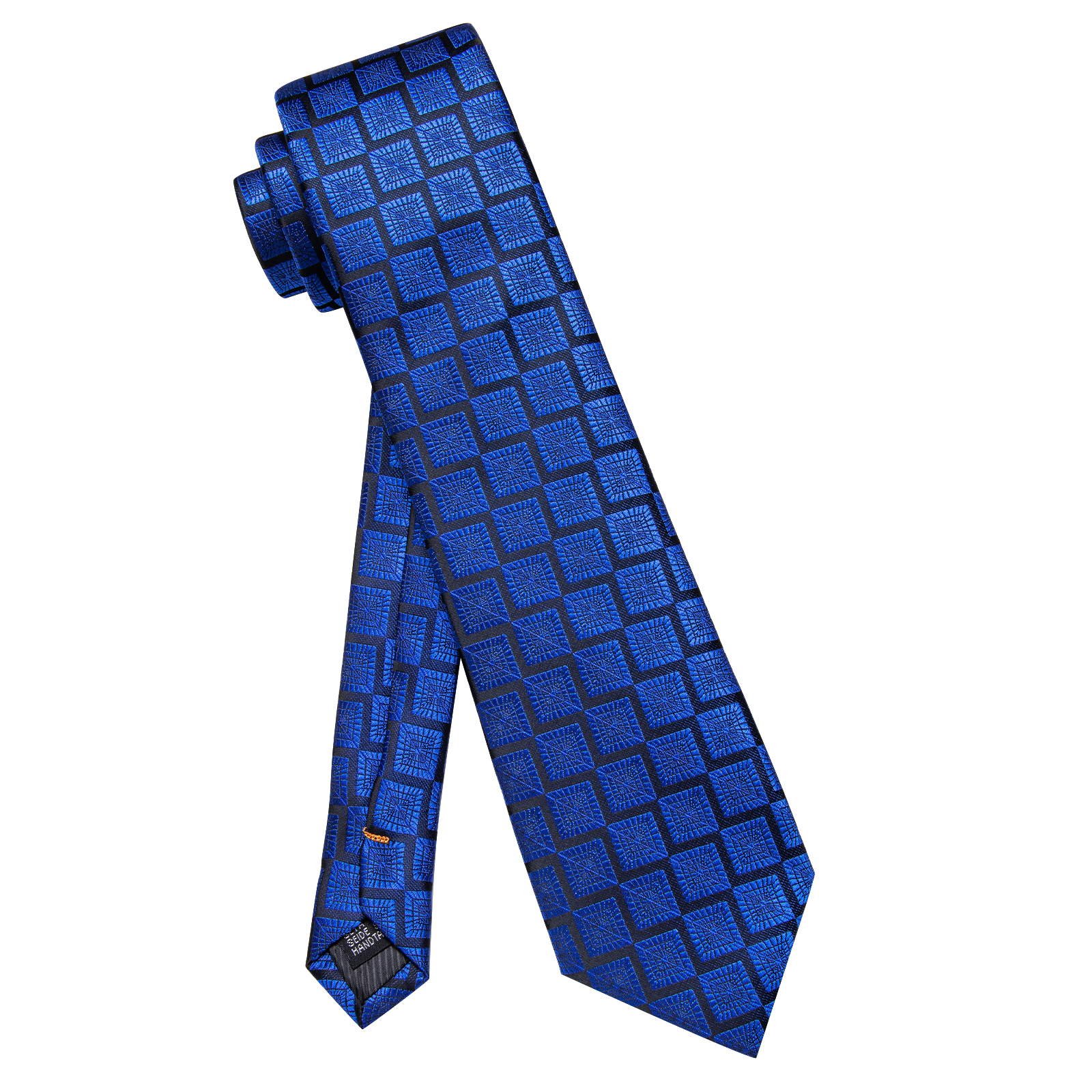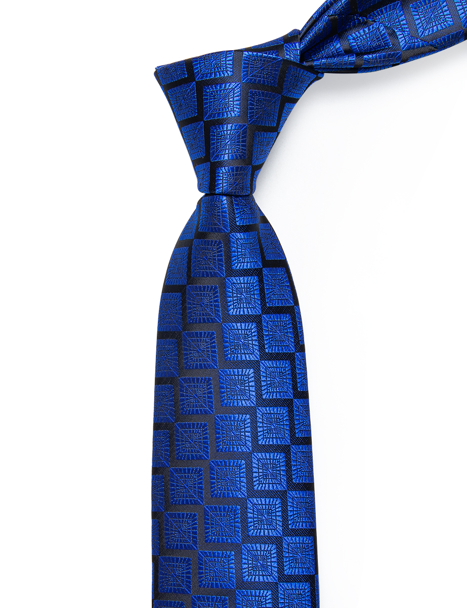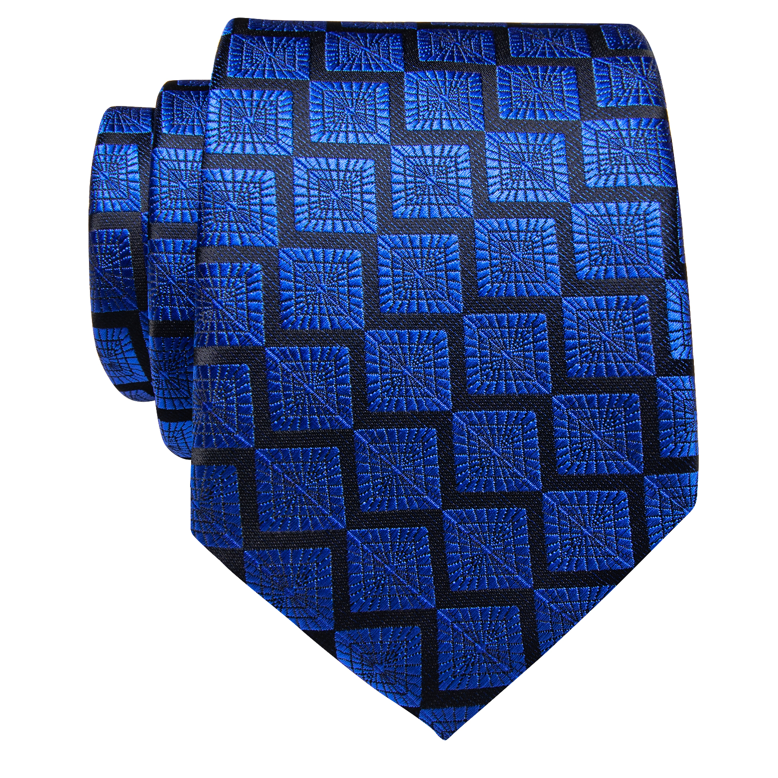 Make a bold statement with the Sapphire Grid Elegance Tie. Featuring a striking blue and black square pattern, this tie adds a modern and refined touch to any formal or business attire. Perfect for those who appreciate a sharp and confident look.