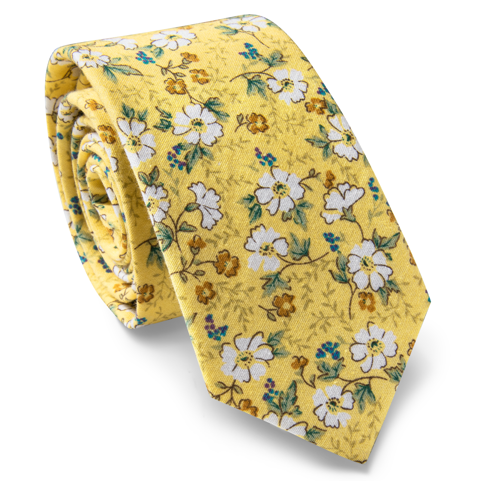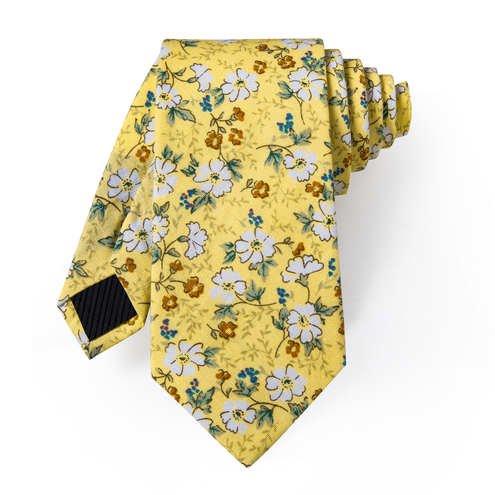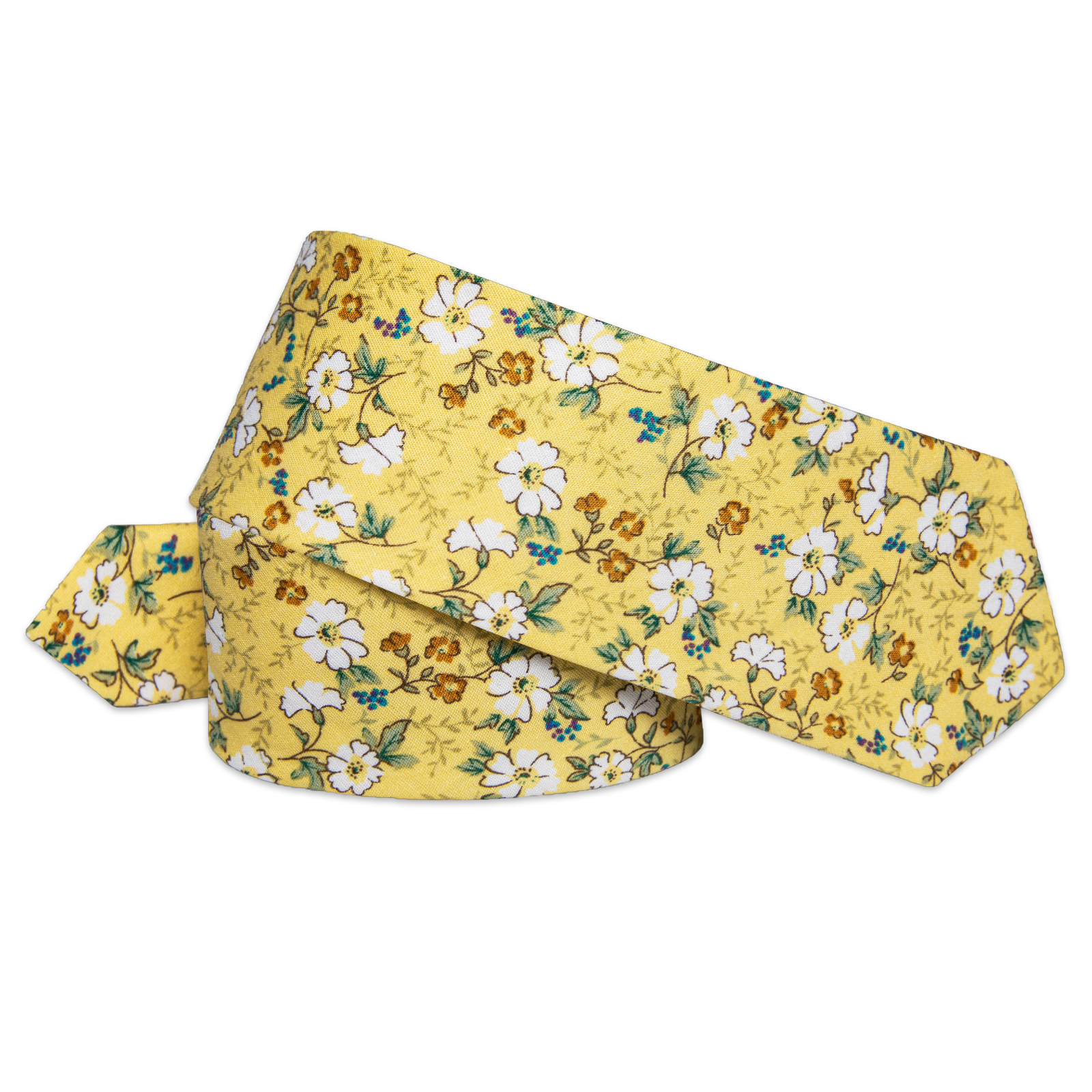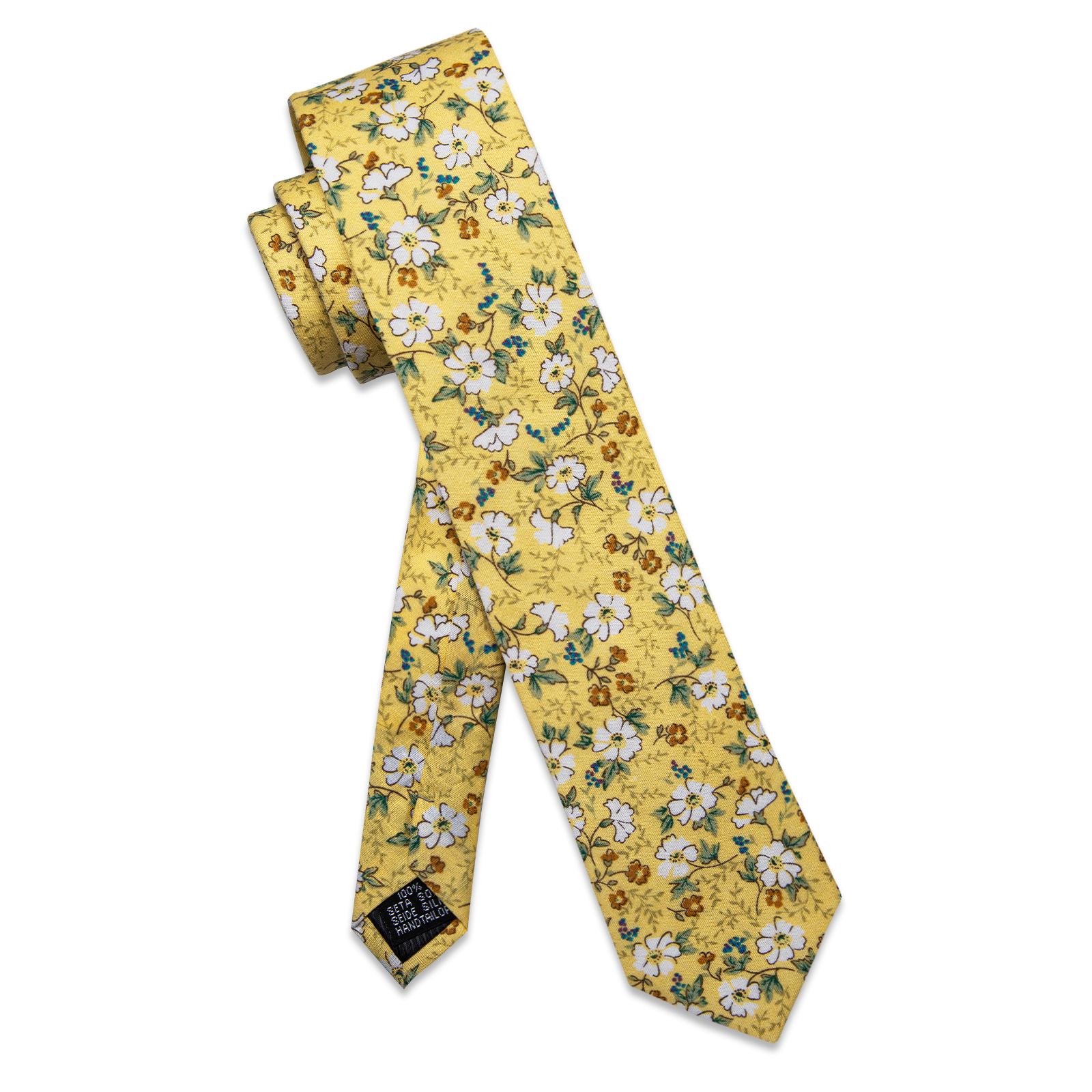 Step into spring with the radiant Spring Sunlight Floral Skinny Tie. The harmonious mix of soft yellow tones and delicate floral prints make it an ideal accessory for brightening your style.