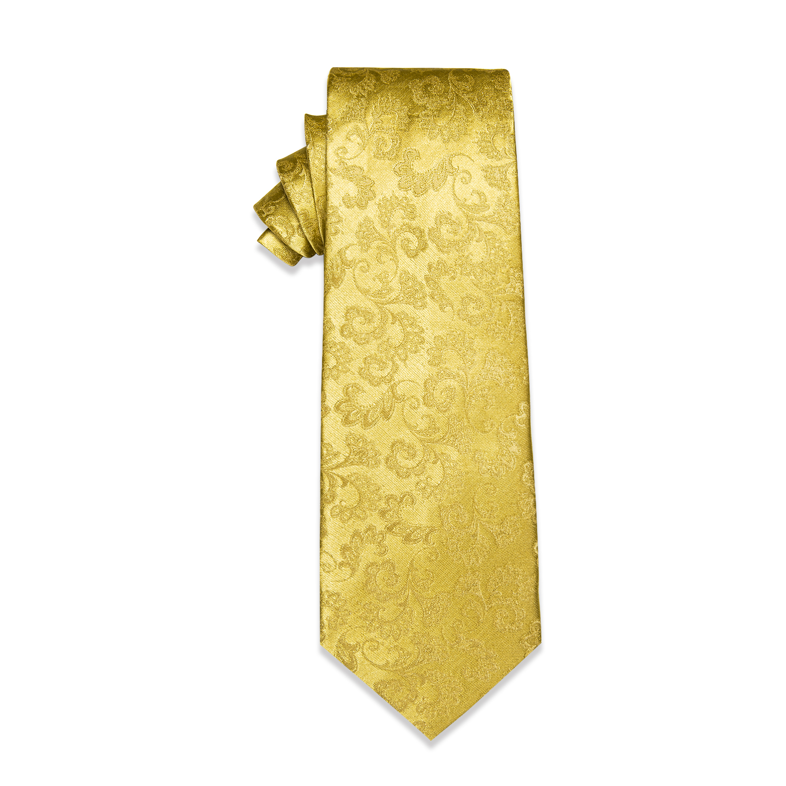 The Suncrest Bloom Floral Tie combines golden-yellow tones with a subtle floral weave for a refined, radiant finish.